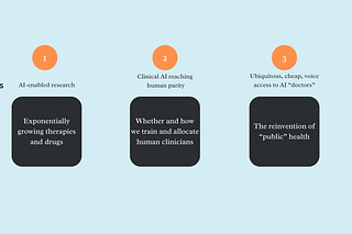 Points beyond which healthcare will change so profoundly as a result of advances in AI that we'll barely recognize it any more